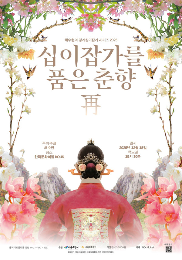채수현의 경기십이잡가 시리즈 2025 〈십이잡가를 품은 춘향: 再〉, 12월 18일 KOUS서 개최 소리꾼 채수현이 경기십이잡가를 현대적 감각으로 재해석한 무대 〈십이잡가를 품은 춘향: 再〉를 오는 12월 18일 오후 7시 30분, 한국문화의집 KOUS에서 선보인다.…