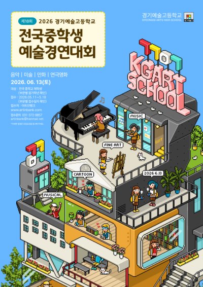 경기예술고등학교, 제18회 전국 중학생 예술경연대회 개최 경기 지역 예술 인재 양성의 요람으로 알려진 경기예술고등학교가 전국 중학생을 대상으로 한 예술경연의 장을 연다. 경기예술고등학교는 오는 6월 13일 교내에서 ‘2026학년도 제18회 전국 중학생 예술경연대회’를…